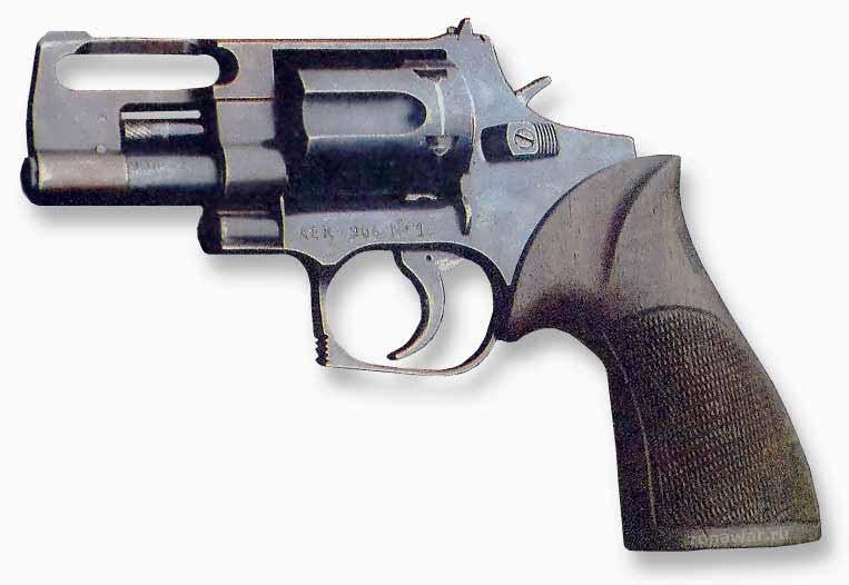 Револьвер АЕК-906, прозванный «Носорог» за свой необычный вид, был разработан в конце 1990х годов по заказу МВД, как оружие самообороны для поражения противника на коротких расстояниях.