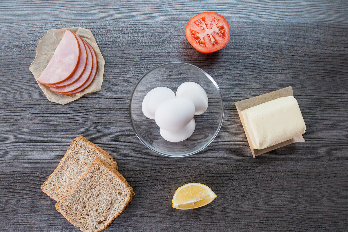 Масло сливочное 170г Яйца 4 шт. Ветчина 50г Прованские травы 2г Помидор 50г Лимон ½ шт. Растительное масло 20 мл Хлеб 2 ломтика Вода 30 мл Соль Приготовление: Совет от шефа: Дно миски должно едва касаться воды, чтобы содержимое не закипело Совет от шефа: Важно не перегреть соус, иначе он разделится на желток и топлёное масло Домашний способ приготовление яйца пашот: Шефский способ приготовление яйца пашот: Сервировка: