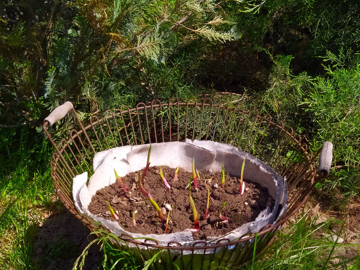 Доброго времени суток уважаемые читатели блога «Dachnik Style». Как много у нас хранится ненужных вещей — просто обычного хлама. Все эти предметы вроде бы и выкинуть надо, а с другой стороны «А вдруг когда-нибудь пригодиться?». Сегодня я покажу вам несколько примеров применения именно таких вещей в своем саду, которые давно ждали участи — быть отправленными на свалку. Начну пожалуй с металлической корзины, если честно, то даже не знаю ее прямое предназначение. Если у вас есть догадки, для чего использовались такие корзины — то пишите об этом в комментариях. Она эффектно вписалась рядом с хвойниками. Для того, чтобы земля не просыпалась сквозь обрешетку, в корзину уложен обычный утеплитель. Посажены туда гладиолусы, и когда они распускаются — корзина перестает быть пустой. Следующие на очереди всевозможные емкости и ящики. Сложно разглядеть, но под пышным ковриком седума, скрывается пластиковый ящик из под фруктов. Как вам пластиковая чаша, наполненная многочисленными цветами «Молодило»