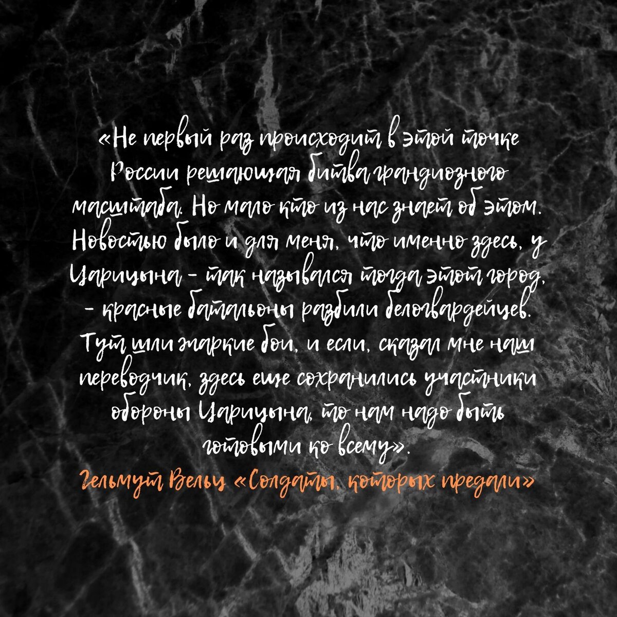 Гельмут Вельц «Солдаты, которых предали»: «Не первый раз происходит в этой точке России решающая битва грандиозного масштаба. Но мало кто из нас знает об этом. Новостью было и для меня, что именно здесь, у Царицына – так назывался тогда этот город, – красные батальоны разбили белогвардейцев. Тут шли жаркие бои, и если, сказал мне наш переводчик, здесь еще сохранились участники обороны Царицына, то нам надо быть готовыми ко всему».