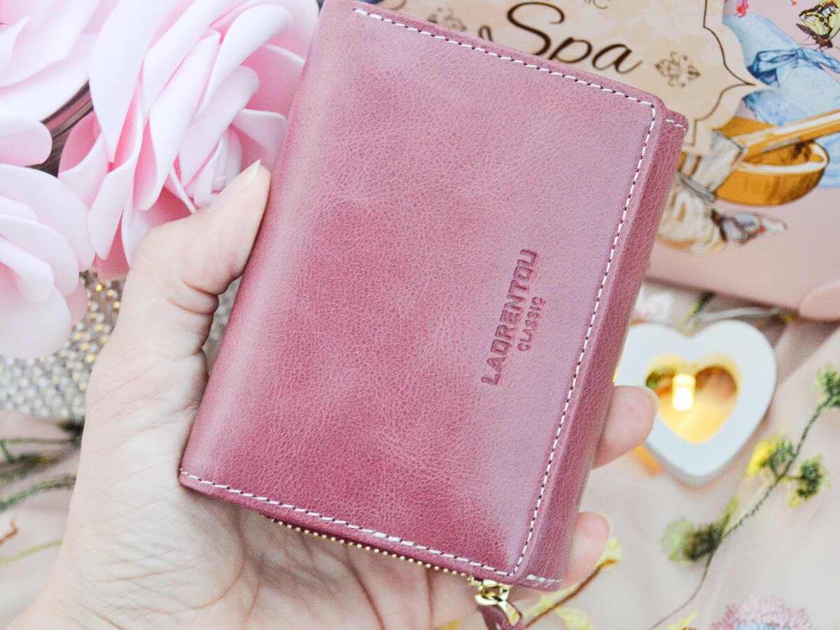 С наступлением тепла мы, девочки, достаем свои красивые миниатюрные сумочки. И конечно же любой кошелек туда не поместится. Длинный из кожи есть, еще прикупила небольшого размера. Очень люблю кошельки из магазина #Laorentou Official Store. Действительно качественная продукция, из натуральной кожи. Сразу из посылки чувствовался запах - запах натуральной выделанной кожи. Кошелек пришел в крафт бумаге. Цвет такой же как на промо фото, может чуть светлее. Цвет заявлен как purple, в действительности это розово-сиреневый. Материал натуральная коровья кожа. Гладкая, мягчайшая. Единственное боюсь, что такая кожа очень деликатная и может легко повреждать замками, ключами. Был опыт. Хотя конечно держать в руках одно удовольствие Сам кошелек сделан из тонкой выделанной кожи А хлястик на бегунке для образца из кожи намного толще. Компактный. С лёгкостью умещается в руке. В сумке так тем более. Размер 11*9*4 см Фурнитура в цвете золота, достаточно качественная и не смотрится дешево. На молнии