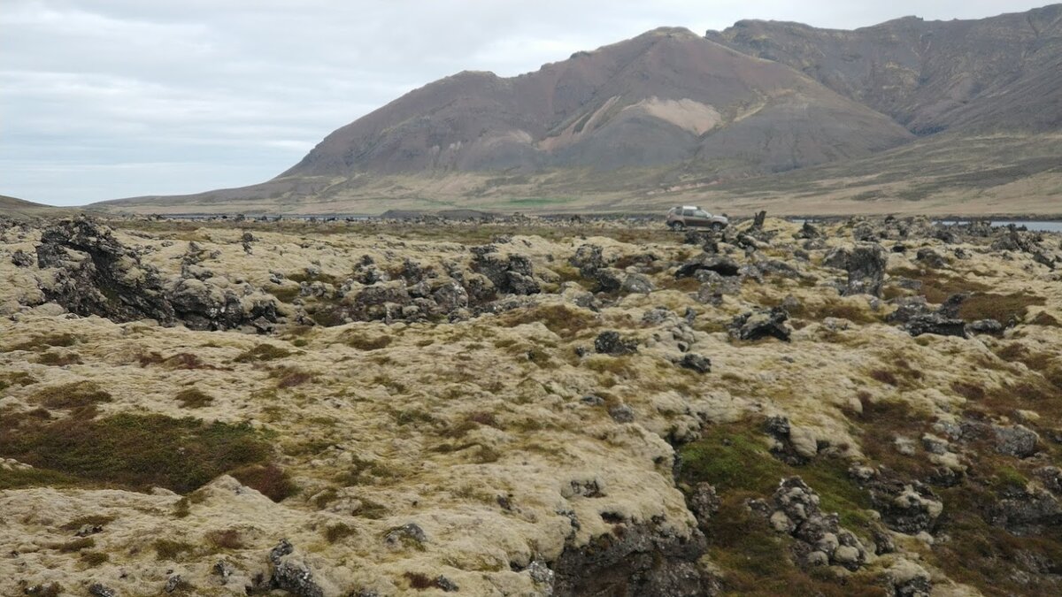Собрались быстро: спешки не было. Погода сменилась на пасмурную. Маршрут начался с лавовых полей. На этот раз они были покрыты мягким мхом. В очередной раз належавшись на этой ласковой природной подушке, я присоединился к попутчикам, во всю возможную прыть исследующих холмики, разломы, камни.