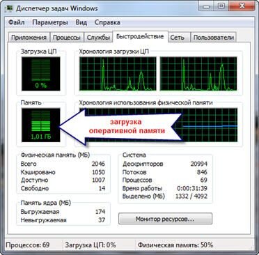 B. Оперативная память. Однозначно надо добавить, если во время работы вся память загружена. Смотрим через «Диспетчер задач», если в пик работы (когда открыто всё что может быть открыто) загружено до 80% оперативной памяти, то лучше её увеличить на 50-100%. Благо она сейчас копейки стоит.