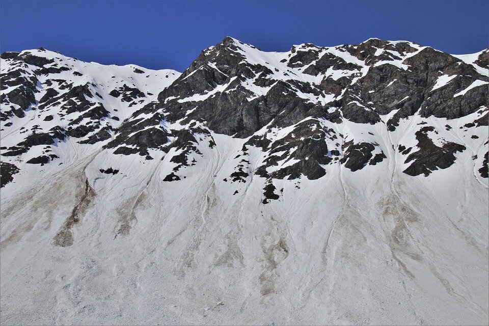 Мы продолжаем знакомить вас с лавинами После того, как снежный рюкзак оседает, мы симулируем новый шторм, или какой-нибудь выдутый ветром снег, создающий плиту. Это переставляет кристаллы снега в пределах 2-сантиметровой зоны. Мы не добавляем снег; мы не забираем снег; но мы берем структуру, которая там есть, и используем движение паров, вызванное этой разницей температур, чтобы перестроить микроструктуру снега в более эффективный путь для движения тепла. К сожалению, это также приводит к механическому ослаблению структуры. Тогда этот слабый слой в конце концов закапывается в какой-то более сильный слой, который мы называем плитой. Плита представляет собой твердый, связующий слой снега, который может быть очень большим, охватывая весь лик горы. И теперь она покоится на вершине слабого основания. Это как построить дом на фундаменте из картофельных чипсов. Наконец, какой-то спусковой механизм, например, лыжник, сноубордист или снегоходник, накладывает на снежный рюкзак достаточную сил
