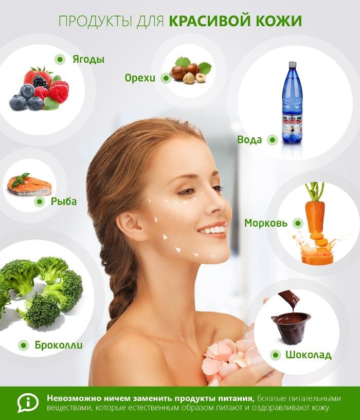 Чтобы иметь красивую кожу, нужно употреблять в пищу ягоды. Все виды ягод, включая клубнику, малину, ежевику, чернику и клюкву, богаты антиоксидантами, которые защищают кожу от широкого спектра заболеваний и замедляют ее старение. Питательные вещества, содержащиеся в ягодах, также стимулируют выработку коллагена, тем самым повышая эластичность кожи. Кроме того, входящие в их состав картоеноиды помогают сделать ее цвет более светлым.