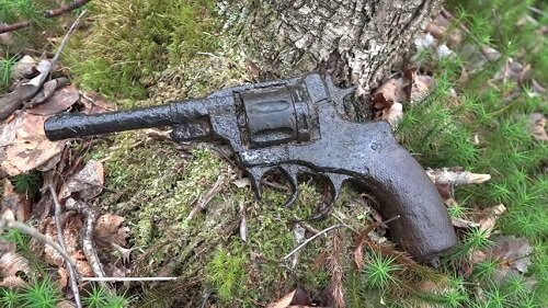 Приветствую вас, дорогие читатели! Сегодня в очередной раз сделаю краткий обзор на видео ребят из поискового отряда "Юрий Гагарин". Как вы, возможно, знаете, они много времени уделили тому, чтобы исследовать места событий Второй мировой и это привело к множеству интересных находок И вот в очередной раз нашли наган и другое оружие у немецких блиндажей, производя раскопки с металлоискателем. Мне это все показалось интересным и я решил поделиться с вами на своем канале Коротко расскажу обо всем, приложу фотографии и одну анимацию. А если захотите посмотреть подробнее, то найдите канал ребят на ютубе. Там все ролики в открытом доступе. Я авторство себе не приписываю, а просто делюсь с вами тем, что меня заинтересовало и может заинтересовать вас Итак, приступим. Приятного прочтения! Первой интересной находкой стал вот такой вот офицерский наган. Если у вас когда-нибудь возникал вопрос: "Что хранится в кобуре у офицера Второй мировой?", то вот он отв
