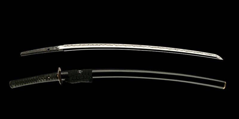 Эта катана, изготовленная приблизительно в 1558-1570 г.г., имеет сильный волнистый хамон (узор на клинке) гуноме мидаре с характерной линией.