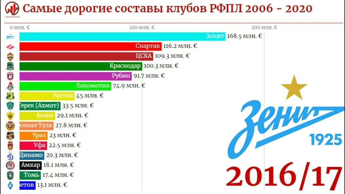 РФПЛ | Трансферная стоимость клубов РФПЛ | Самые дорогие составы РФПЛ