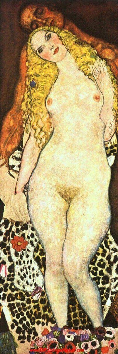 Адам и Ева были первой библейской картиной Климта. Конечно, это был единственный, кто представил человечество в состоянии благодати, потому что сцена, казалось бы, была установлена до Падения, возможно, в момент создания Евы. Как единственная по-настоящему целомудренная женщина, Ева - героиня, сильно отличающаяся от Джудит. Современники Климта отмечали, что его идеальная женщина в целом значительно отошла от венского понятия красоты: она была стройнее, чем пышная, рыжая или брюнетка, а не блондинка. Этот «тип Ветхого Завета» (как эвфемистически называли типичную героиню Климта) обладал аурой экзотики, которая была привлекательной и намеренно пугающей. Меч, который пронзил оба пути, его концепция femmefatale потворствовала скрытым антисемитским страхам, в то же время прославляя сам предмет этих страхов. Неудивительно, что по этой причине (а также потому, что многие из его покровителей были евреями), Климт подвергся антисемитским атакам. Как бы то ни было, любопытно отметить, что, когда он выбрал свою модель для матери рода человеческого, он выбрал белокурого, «чистокровного арийского» типа - одного из немногих, появившихся на его картинах. Есть и другие аспекты Адама и Евы, которые отличают его от остального творчества Климта. Тематически это было продолжение многих версий «Поцелуя», и предварительные рисунки указывают, что композиция возникла непосредственно из этих ранних работ. Однако если во всех воплощениях «Поцелуя» доминирует мужчина, то здесь Ева выдвигается на первый план. Исследования показывают, что Климт подумал о том, чтобы позировать ее спиной к себе (как мужчина в «Поцелуе»), но решил расположить обе фигуры лицом вперед, чтобы их лица были видны (еще один отход от предыдущих работ). В результате у Адама больше присутствия, чем у большинства мужских персонажей Климта, хотя его роль вряд ли сильна. В любопытном аннулировании обычной символики мужчина пассивен, сонлив, а женщина активна, бодрствует. Ночь (или луна) традиционно была женской силой, днем (солнцем) мужского пола, и поэтому они изображались в версии Бетховена Фриза "Поцелуй". Здесь, однако, именно мужчина, кажется, связан с ночью, в то время как более светлая женщина излучает солнечный свет. Климт постепенно вырывался из стереотипов сексуальности, чтобы принять более широкое и оригинальное видение.