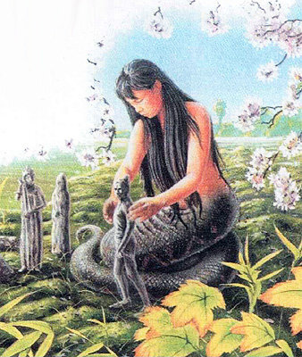 Древние космогонические мифы бурят гласят: все в мире имеет свое начало, море появилось из лужи, рыбы из маленьких рыбок, большие деревья из побегов, реки из ручейков, небеса из тонких просвечивающих плевр. Это поется во многих героических песнях. Однако это уже поэзия, а сами мифы о начале мира противоречивы. Широко распространена следующая версия: в начале был хаос, в котором во мраке бродила Великая Мать-богиня — Эхэ бурхан. Решила она разъединить небо и землю, сделала дикую утку, та нырнула в воду и принесла в клюве грязь. Из этой грязи Эхэ бурхан слепила землю-матушку Ульгенъ, затем сотворила на ней растения и животных. От Солнца Эхэ бурхан родила дочь — добрую Манзан Гурмэ, от которой позже родились все западные божества. От Месяца Эхэ бурхан родила вторую дочь — злую Маяс Хара, от которой пошли все восточные небожи