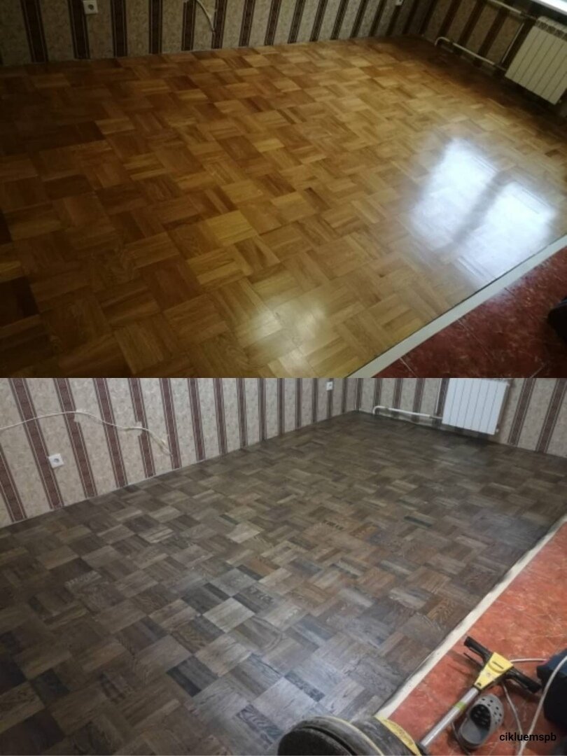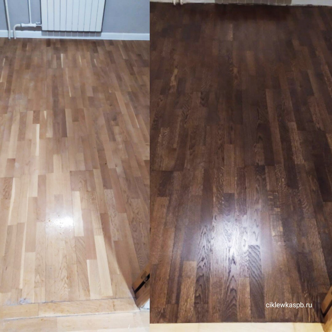 Порой люди хотят не просто покрыть паркет лаком, но придать ему какой-нибудь цвет, задать тон. Как мы уже упоминали, существует масло, которое было изготовлено не бесцветным, а уже с каким-либо оттенком. Это может быть натуральное масло или масло с твёрдым воском. Здесь же мы разберём отдельный продукт - тонер или, по-простому, тонировка. Она используется для придания паркету какого-либо цвета, оттенка. Их существует великое множество - светлее, темнее, ярче. В общем, на любой вкус) Нанесение тонировки происходит с помощью дискового аппарата. Различие в нанесении зависит от того, насколько светлый или тёмный тон выбран.