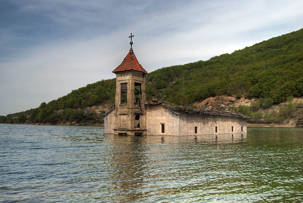 Церквушку в селе Маврово построили в 1850 году. Более 150 лет там проводились службы. Но в середине ХХ века власти решили организовать искусственный водоем, чтобы питать поселение водой. Церковь пришлось затопить. Сейчас из воды живописно торчит е колокольня. В засушливые периоды вода уходит, и в разрушенную церковь можно зайти.