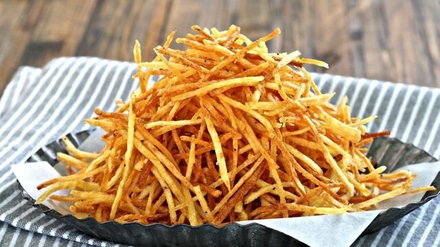 Возможно, хрустящая картошечка станет одной из любимых закусок в вашей семье. Родные влюбятся в это блюдо, как только его попробуют. Ингредиенты: Готовим С клубней картофеля снимаем кожуру. Картошку натираем на корейской тёрке. Нарезанный картофель хорошо промываем и обсушиваем. В кастрюле на среднем огне разогреваем подсолнечное масло и выкладываем в него первую порцию картофеля. Как только картошка перестаёт шипеть, достаем её с помощью шумовки и выкладываем на блюдо с бумажным полотенцем. Таким образом, в несколько заходов обжарьте весь картофель. После того, как лишнее масло впиталось в бумажную салфетку, перекладываем картофель на красивое блюдо и посыпаем его солью и копчёной паприкой. Вкусная хрустящая закуска готова. Можно подавать к столу. Приятного аппетита!