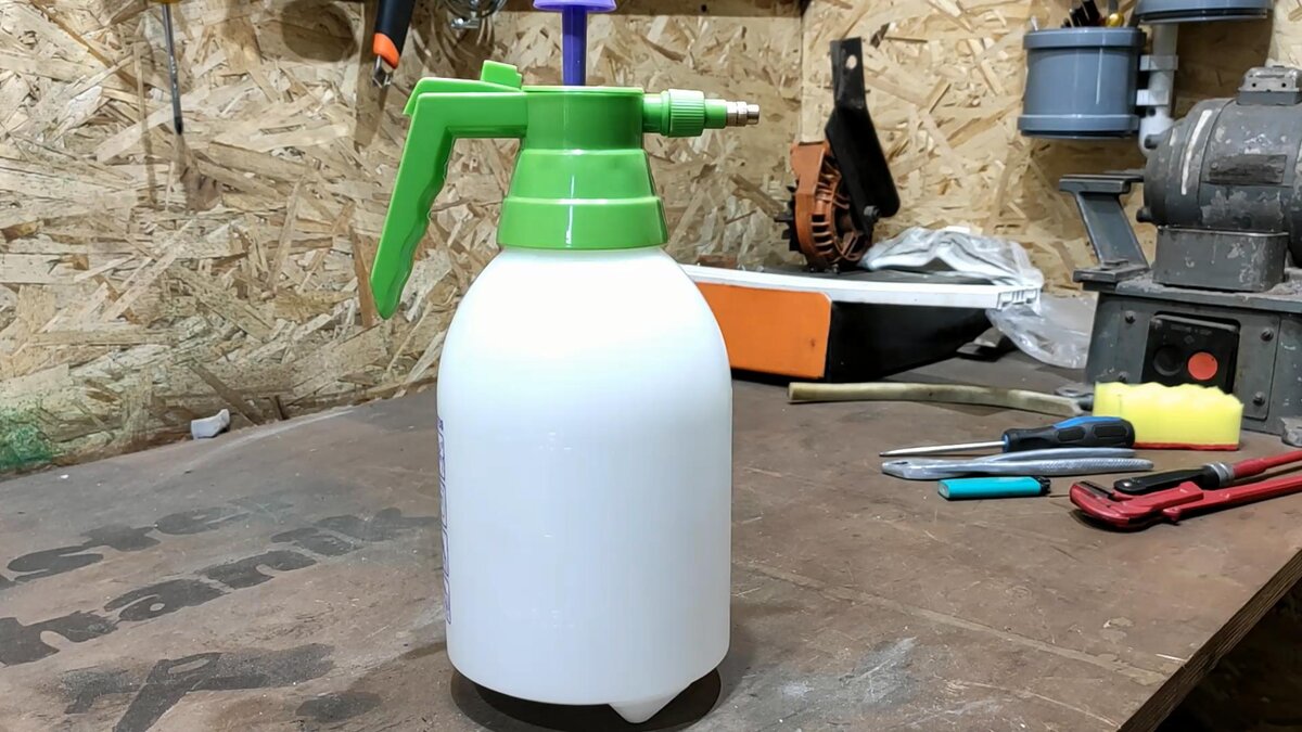 Берем обычный опрыскиватель для различных дачных нужд.
