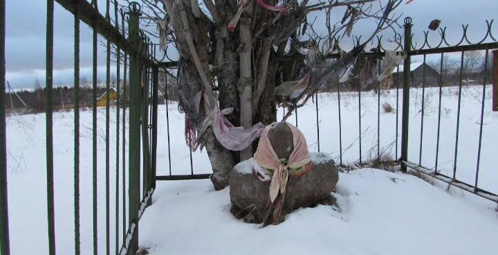 Рядом с деревней Поречье, Струго-Красненского района стоит каменный идол, которому и сейчас день поклоняются люди. Учёные Псковского музея-заповедника, совершенно случайно наткнулись на него во время одной из археологических экспедиций. Они были удивлены тем, что идол был одет в человеческую одежду, так же их поразил факт поклонения современных людей идолу. - К Каменной бабе приходят и приезжают люди. Просят у неё помощи, исцеления, подобно как верующие идут к могиле Ксении Петербуржской. Рядом с идолом, на счастье, ставляют амулеты: косынки, ленточки, монетки. - рассказывает местная жительница, Алла Михайловна. Вокруг Каменной бабы оградка внутри которой растёт огромный клён, а под ним и стоит идол. Напротив него - деревянный православный крест, под ним могила женщины Анастасии. На оградке и дереве повязаны ленточки. Прикоснувшись к идолу, можно ощутить тепло и сильнейшую энергетику, идущую от камня. Мобильная связь здесь не работает, хотя