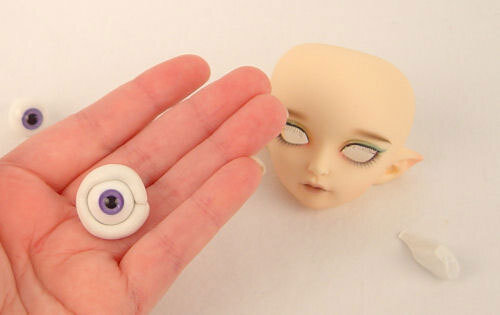 7. Теперь необходимо выбрать правильное положение глаз, чтобы придать лицу бжд-куклы задуманное вами выражение. Это лучше делать, повернув лицо к себе. Подвигайте глаза, пока не найдёте нужное положение. Естественным считается такое положение, при котором радужная оболочка немножко прикрыта веком. А дальше всё зависит от вашей фантазии.