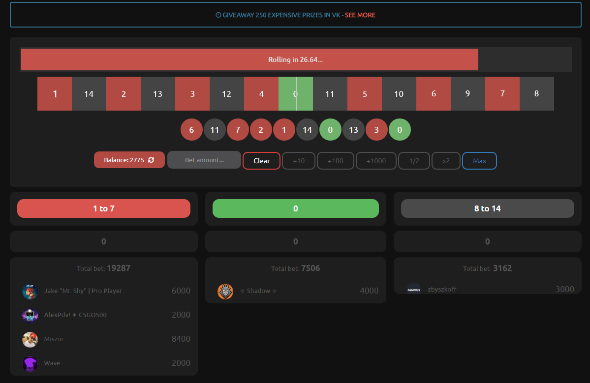 В CS GO сайты рулетки содержат почти идентичные игры.