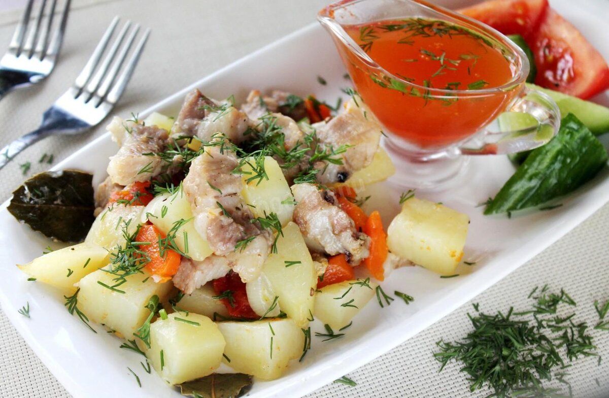 ингредиенты свинина 400 гр картошка 400 гр . соль по вкусу морковь 0.5 гр лук репка 1 шт. специи сухие по вкусу лавровый лист 2 Мясо в банке в духовке с картошкой - простое блюдо, известное большинству хозяек с давних пор, когда в дефиците были горшочки и формы для запекания. Сейчас все это есть в избытке, но все же нет-нет да и встретишь забытый рецепт. В банке запекать продукты удобно тем, что все видно на просвет - и как картошка с мясом закипает, и сколько сока образуется. По внешнему виду можно сразу определить степень готовности. Это очень удобно, согласитесь. Поэтому и не уходит в лету совсем этот рецептик. шт.