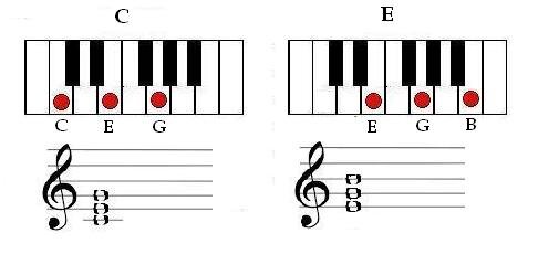 Если совсем кратко, обращение аккордов - это перенос ноты в составе аккорда из одной октавы в другую. В чем практическое значение обращений? Допустим, мы играем на пианино и у нас есть последовательность из двух аккордов – С и Е. Вместо того, чтобы перемещать полностью всю руку с одного аккорда на другой, можно просто переместить ноту «си» в составе аккорда Е на октаву ниже: Таким образом, мы получим первое обращение аккорда Е, а чтобы сыграть последовательность из двух аккордов, достаточно сместить только один палец на клавиатуре. Нотный состав получившегося аккорда будет идентичен стандартному Е. Обратив еще одну ноту, получим второе обращение аккорда Е. Третье обращение даст нам тот же самый аккорд, но целиком на октаву выше или ниже. Однако, обращение нарушает правила построения базового аккорда – изменяет нижнюю, басовую ноту и изменяет интервалы внутри аккорда. Попросту – он звучит немного иначе, хоть и сохраняет свою функцию в мелодии. А значит, вне контекста и гарм