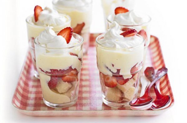 Десерт можно подавать сразу, можно перед подачей охладить. Украсить клубникой и мятой. Приятного аппетита.