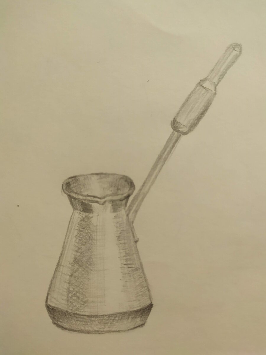 Почему так назвала статью? Такой совет дали мне в комментариях к статье «Не люблю карандаш. Что делать?» Мне кажется, что это замечательный совет. Поэтому я сегодня не просто учусь рисовать, а учусь любить карандаш. Карандаш позволяет рисовать всегда и везде, т.к. требуется минимум принадлежностей для рисования: несколько карандашей (я использовала всего три - НВ, 3В и 5В), бумага (у меня обычный альбом для рисования) и клячка. Для меня это еще один «+» в пользу карандаша. Так что могу уделить внимание своему хобби, даже то время пока готовится еда. Я на кухне, поэтому сегодня рисую посуду. На первых двух рисунках использовала штриховку. А вот кружку из темного стекла рисовала по-другому. Применила совет из комментариев, который мне дали, чтобы полюбить карандаш: мягким карандашом (у меня самый мягкий – 5В), наточенным по художественным правилам, рисовала плашмя тушевкой без четких штрихов, водя плоскостью грифеля по листу. Блики сделала клячкой. Чтобы лучше увидеть тень сделала б