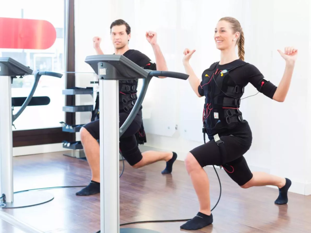 Тренировка EMS стимулирует мышцы сокращаться на 150 больше, чем во время обычных упражнений. Благодаря этому упражнения могут длиться нам