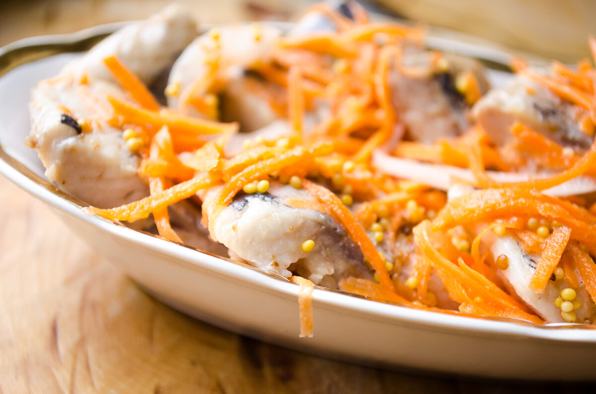 Селедочка по такому рецепту получается малосольная с пикантным вкусом. Выглядит эффектно и красиво. Вкус рыбки после засолки неповторимый, его отлично дополняет морковь с луком. Вкусная закуска к празднику и на каждый день из сельди.