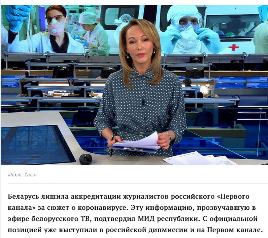 СМИ не зря называют 4 властью. Ведь всё, что они нам рассказывают или навязывают, мы часто принимаем за чистую монету. И строим свою жизнь по этим принципам. Буквально на днях Первый канал России показал репортаж о "7 фейках о коронавирусе в Беларуси". В ответ на их публикацию власти Беларуси лишили аккредитации российских журналистов и привели свои примеры о фактах сокрытия правды российским телевидением. Белорусские журналисты назвали репортаж "Информационной атакой на Беларусь". Вернее, упрекнули их в использовании грязных приемов, не соответствующих журналисткой этике и правде. Вот примеры "лживых утверждений" о заболевании от 1 канала РФ. "Фейки" от российского канала о коронавирусе в Беларуси: 1. Аппаратов ИВЛ, коек и врачей в больницах Беларуси не хватает. 2. Количество свежих могил увеличилось за последние недели, а в заключении о смерти пишут причины "сердечная недостаточность" и др. 3. Результаты на тест не приходят. Кухонный работник одной из больниц сдала анализы в конц