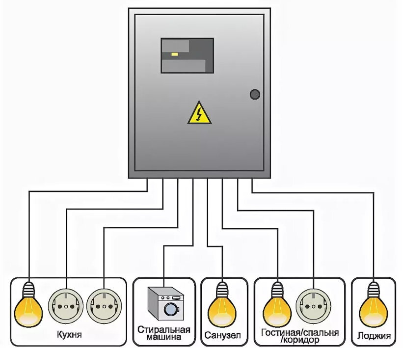 Недостатком звезды – является, как минимум троекратный расход проводов и, соответственно, трудозатрат по монтажу. При этом, квартирный щиток становится размером со средний шкаф. Он может включать 70-100 групп автоматов, особенно если на объекте есть еще и информационные сети. Собрать такой щиток самостоятельно сложно, и он дороже обычного.