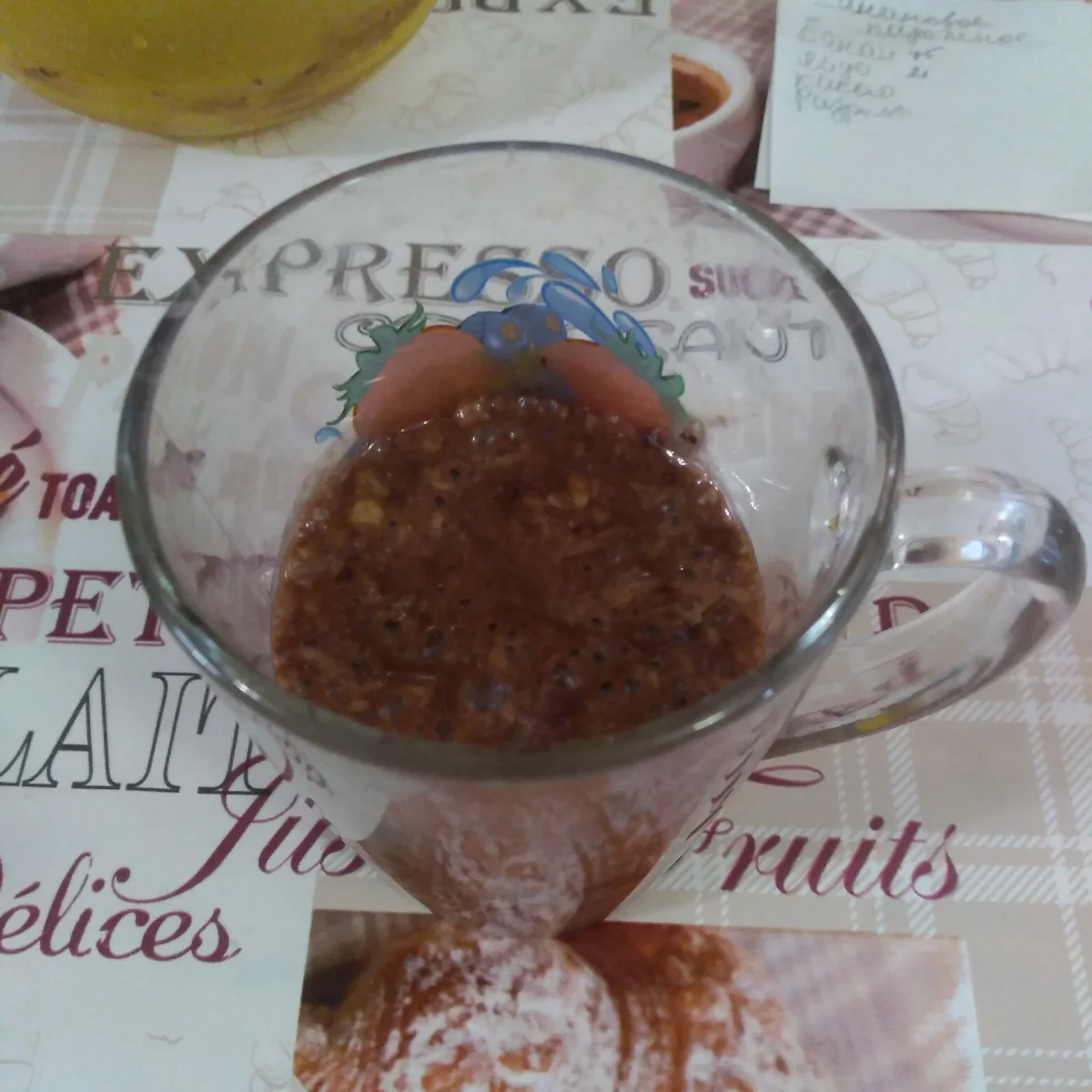 Если возьмете целое куриное яйцо, увеличьте количество муки до 15 г, а какао - до 5 г.