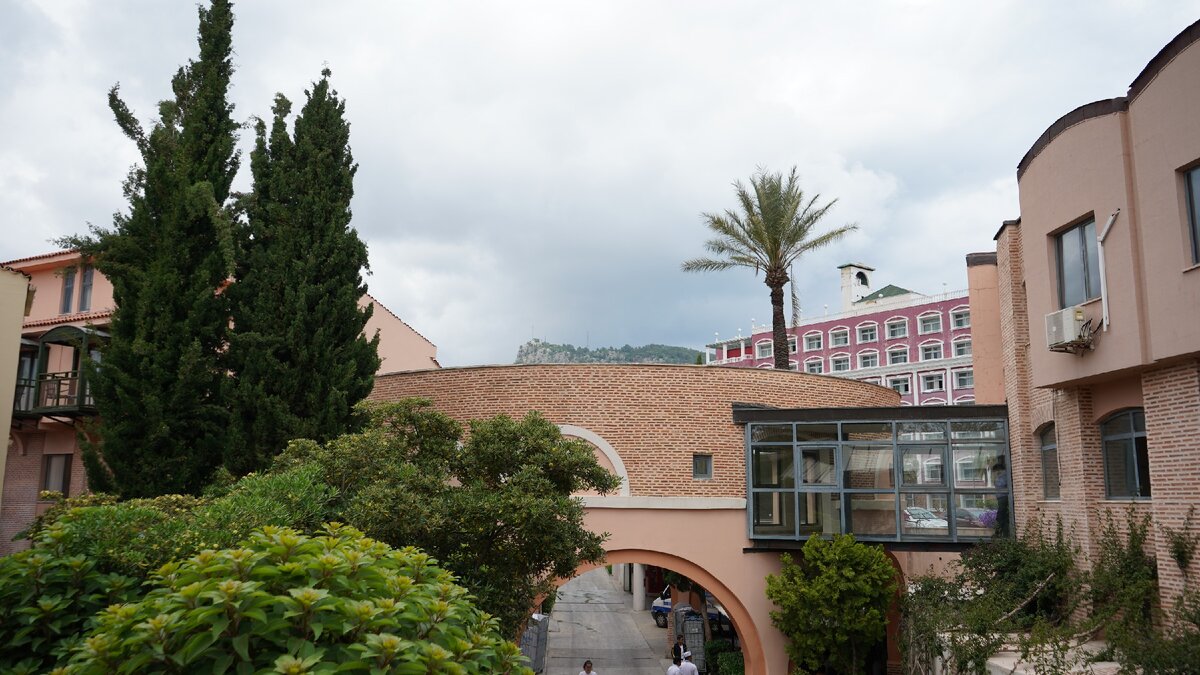 Когда приехали в Кемер, то стало светать, но в нашей гостинице было также безлюдно. На ресепшене нас встретил спокойный турок и попросил подождать, пока наш номер приведут в порядок. И предложил пойти позавтракать. И с этого момента ситуация стала исправляться. Реально, солнце вышло, на завтрак нас ждал кофе и, как всегда, хороший шведский стол. И зелень, и мясо, и выпечка. Когда мы поели, и отправились смотреть номер, то и номер нас удивил, он был большой, около 50м2. С двумя балконами, с которых открывались прекрасные виды на горы. И на футбольные поля.