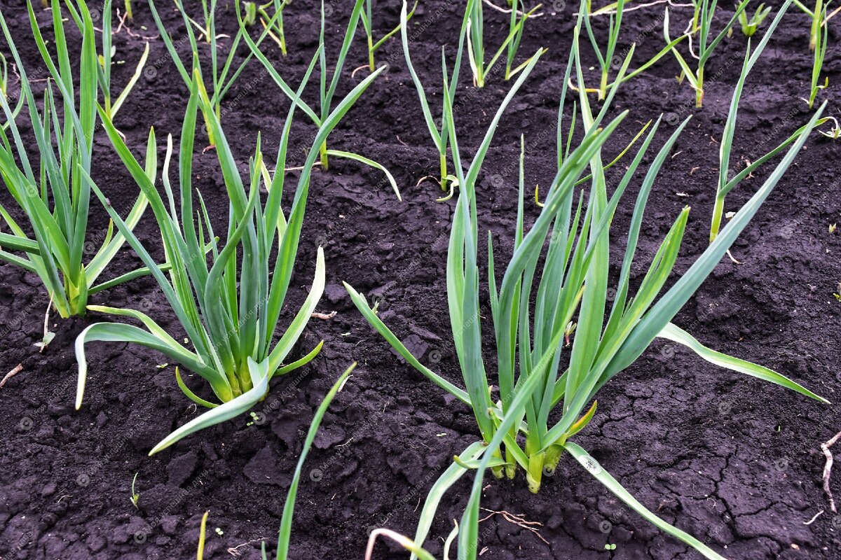 Подкормку провожу один раз, после того как листья чеснока появятся из земли.
