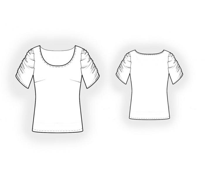 посмотреть модель на сайте 5968 БЛУЗОН С РУКАВАМИ НА СБОРКЕ РЕКОМЕНДАЦИИ ПО ВЫБОРУ ТКАНИ: трикотаж средней степени растяжимости из натуральных или смесовых волокон, например бархат-стрейч. А ТАКЖЕ ВАМ НЕОБХОДИМО: нитка-резинка. ЕСЛИ НА ЛЕКАЛАХ ДВОЙНОЙ КОНТУР, ТО ЛЕКАЛА ДАНЫ С ПРИПУСКАМИ НА ШВЫ, ЕСЛИ КОНТУР ОДИНАРНЫЙ, ТО ЛЕКАЛА ДАНЫ БЕЗ ПРИПУСКОВ НА ШВЫ. ПРИПУСКИ НА ШВЫ: припуск по низу изделия, низу рукава и срезу горловины – 1.5 см, остальные швы 0.8 см. ВНИМАНИЕ! ПРЕЖДЕ ВСЕГО, РАСПЕЧАТАЙТЕ БУМАЖНЫЕ ВЫКРОЙКИ И РАЗЛОЖИТЕ ИХ НА ШИРИНУ ТКАНИ (ширина ткани может быть от 90 см до 150 см) ДЛЯ ТОГО, ЧТОБЫ ВЫЯСНИТЬ, СКОЛЬКО МАТЕРИАЛА ВАМ ПОТРЕБУЕТСЯ. ПРИ СТАЧИВАНИИ ДЕТАЛЕЙ ОБРАЩАЙТЕ ВНИМАНИЕ НА НАДСЕЧКИ - ОНИ ДОЛЖНЫ СОВПАДАТЬ! РАСКРОЙ: Из основной ткани: 1. Спинка – 1 деталь со сгибом 2. Полочка – 1 деталь со сгибом 3. Рукав – 2 детали Совет: Детали кроя из трикотажных полотен стачиваются специальной эластичной или узкой зигзагообразной строчкой. Припуск на подгибку настрачивается дв