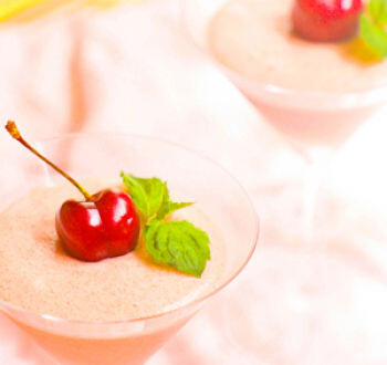 Берём креманки и раскладываем в них ягодный мусс. Затем ставим их в холодильник охлаждаться на 2 часа. Перед подачей можно украсить мусс ягодкой, например вишенкой, или листьями мяты. Приятного аппетита!
