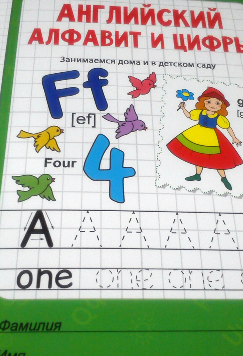 Увидела прописи ( они же рабочие тетради в "Светофоре". Подробно книжки не рассматривала, полистала. Хорошие, красочные, неплохая бумага, недорогие. Ну уж не знаю, стоит ли усаживать ребенка за эти прописи с английскими буквами и цифрами ! Разве что если сам ребенок этого очень хочет! Дошкольникам это ни к чему. Когда они начинают писать в школе по- английски, прописи им тоже уже не нужны. Рука пишет уже довольно уверено. В общем, я думаю, что такая тетрадь бесполезна.А ведь найдутся бабушки или мамы, которые посадят ребенка за прописи и скажут "пиши" ! Вот что хорошо в этой тетради, так это наклейки. На обложке показаны все рабочие тетради из этой серии. Это уже для тех, кто учится читать или уже умеет. С заданиями на развитие внимания. А тут, видимо, и математика, и обучение чтению. А вообще , в связи с этими рабочими тетрадями, мой совет : ни в коем случае не усаживайте ребенка за прописи насильно. Иначе потом такая нелюбовь к учебе будет ! И столько проблем в школе! Все