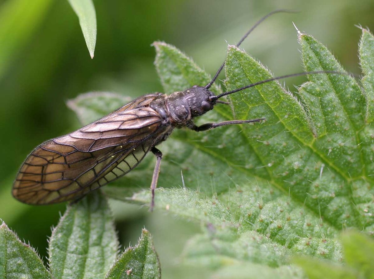 В начале лета на берегу пруда на листьях камыша или растущих у воды деревьев можно найти редкое крупное насекомое – вислокрылку из отряда большекрылых. Чем-то вислокрылки похожи на рогатых стрекоз, но летают они неохотно. А по-английски вислокрылка будет «ольховая муха» – «алдерфлай» («alderfly»). Два!