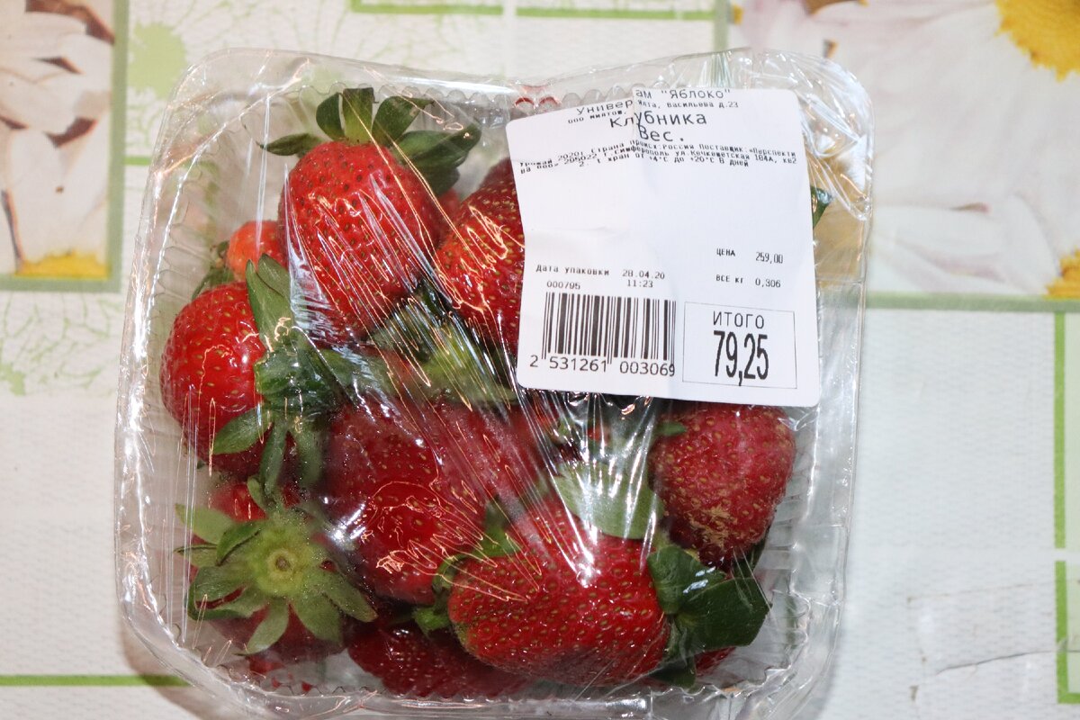 В магазинах и на рынках Крыма уже во всю продают клубнику. А незадолго до этого все новостные сайты писали о том, что в Крыму взошла сладкая клубника. На рынках она продается по 500-600 рублей за 1 килограмм. Не знаю какой дурак будет брать клубнику за такую сумму да еще и в апреле-мае. Нормальная клубника поспевает в начале июня. Но муж на днях зашел в универсам Яблоко в Ялте и увидел красивые ароматные плоды. Да и всего за 259 рублей за килограмм. Лоточек был весом 306 грамм и обошелся ему всего на 79 рублей. За такую сумму не жалко купить на пробу клубнику. Я так обрадовалась, когда увидела лоток с клубникой, хоть и знаю, что сейчас не время для этого урожая. Еще больше сбил с толку сильный аромат клубники. Сразу помыли и стали пробовать. Ягоды красивые, все целенькие, мятых не было. Да, я знаю, что клубника это не ягода, а орех. Но просто как-то странно звучит: "Орехи клубники." Я так расстроилась, клубника оказалась совсем безвкусная, а некоторые плоды еще и кислые. Даже соскучивш