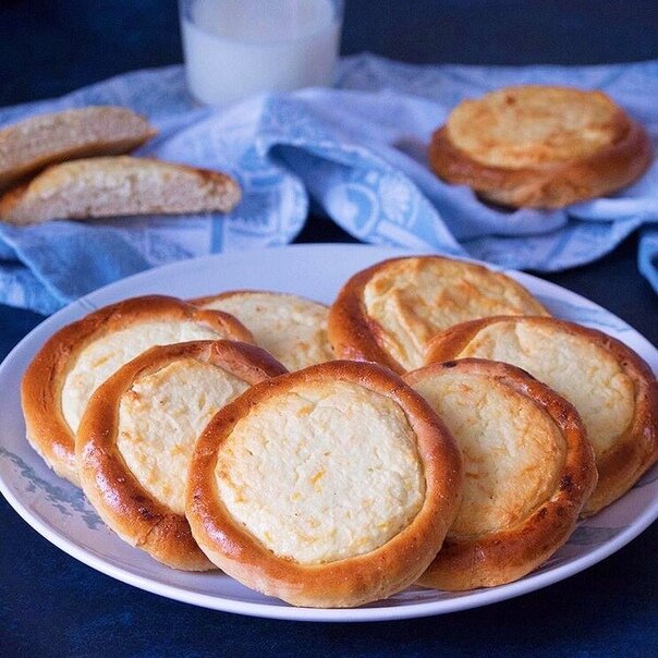 На 4 стакана пшеничной муки - 6 столовых ложек сахара, 4 яйца, 1/2 чайной ложки соли, 20 гр дрожжей, 600 гр начинки, 1 стакан молока или воды. Готовим тесто ( опарное или безопарное) рецепт в этой статье - (https://zen.yandex.ru/media/id/5e90b91809479b4b6c0c55b7/prigotovlenie-drojjevogo-bezoparnogo-i-oparnogo-testa-5eb0091f7386957c8ac84a17), выкладываем на пирожковую доску, посыпанную мукой. Из теста формируем круглые пышечки, укладываем их швом вниз с промежутками 3-4 см на смазанный маслом противень и поставить в теплое место на 20 минут для расстойки. В расстоявшихся булочках донышком маленького стакана сделать углубление, которое потом в нескольких местах проколоть концом ножа или вилкой и заполнить твороженной начинкой. Затем даем ватрушкам расстояться 10 минут в теплом месте, смазываем их яйцом и выпекать при температуре 220 градусов в течении 15 минут. Начинку для ватрушек можно приготовить из повидла, свежих ягод, картофеля и из любых других продуктов. Свежие ягоды - землянику
