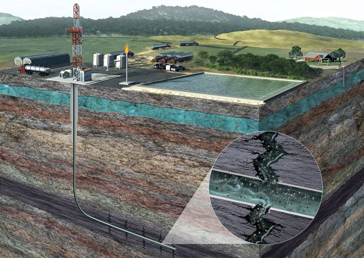 Один из самых эффективных методов нефтеотдачи и интенсификации притока жидкости и газа к скважинам. Метод заключается в создании высокопроводимой трещины в целевом пласте для обеспечения притока добываемого флюида (газ, вода, конденсат, нефть либо их смесь) к забою скважины. После проведения ГРП дебит скважины, как правило, резко возрастает. Метод позволяет «оживить» простаивающие скважины, на которых добыча нефти или газа традиционными способами уже невозможна или малорентабельна. Кроме того, в настоящее время метод применяется для разработки новых нефтяных пластов, извлечение нефти из которых традиционными способами нерентабельно ввиду низких получаемых дебитов. Также применяется для добычи сланцевого газа и газа уплотненных песчаников. Обычно на проведении ГРП и других методов интенсификации нефтедобычи специализируются сервисные нефтяные компании. Технология осуществления ГРП при добыче нефти включает в себя закачку в скважину с помощью мощных насосных станций жидкости разрыва (г
