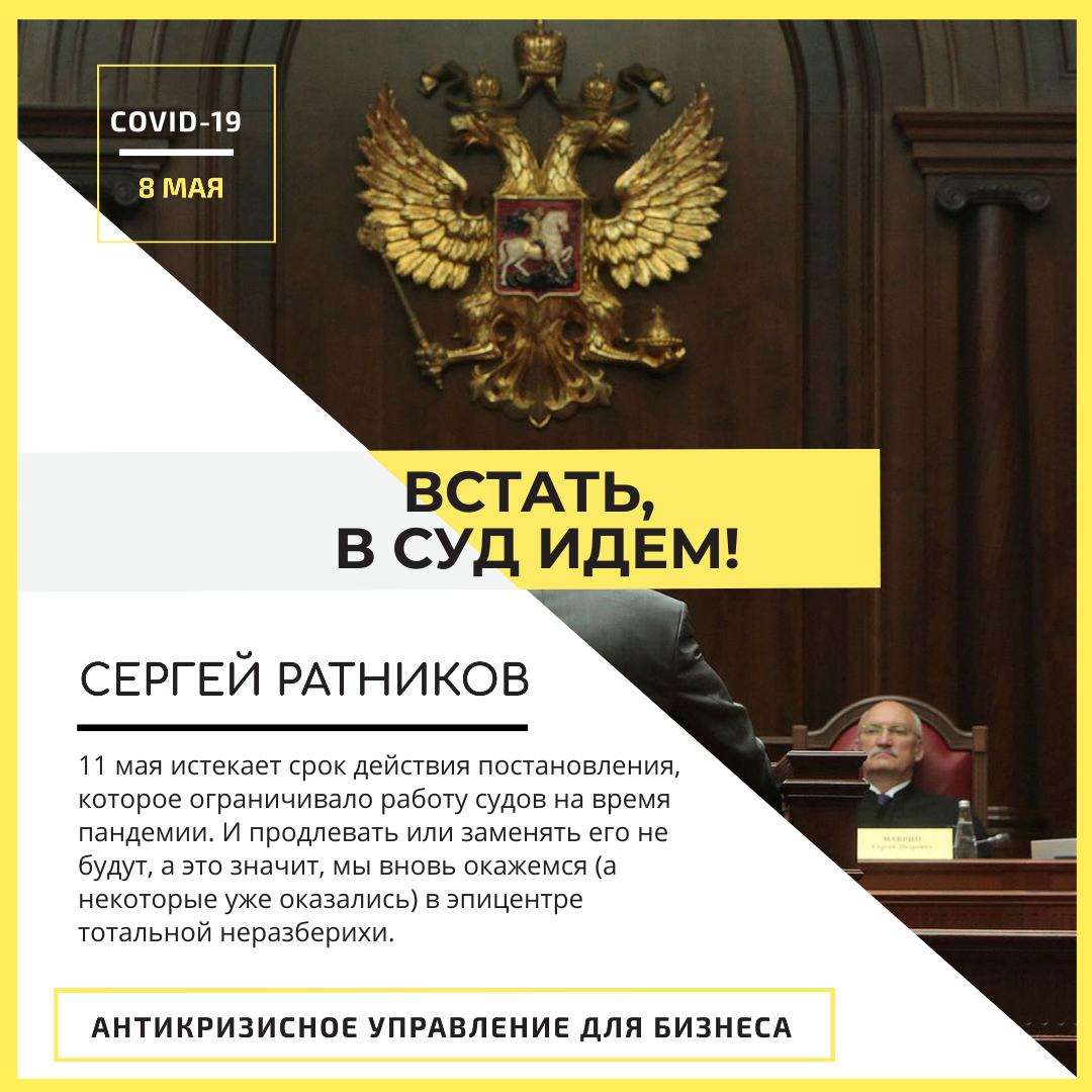 Меры против коронавируса: С какими проблемами мы сталкиваемся на практике: Есть и суды, которые не рискуют предсказывать свой режим работы, надеясь на разъяснения Верховного суда. И распоряжение ВС 8 мая вышло, правда на огромную инструкцию оно не похоже. Если кратко, документ предписывает всем посетителям, в том числе участникам процесса, носить маски/респираторы и перчатки. А значит, как будет оправляться правосудие так, как решат инстанции на местах.