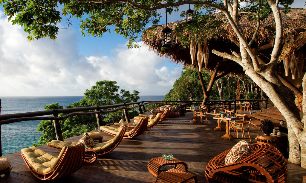 5 МЕСТО Фиджи (островная группа Вануа-Леву). Отель Laucala Island Resort. Вилла – от $ 25000 за ночь. «Рай на земле» - только так можно назвать роскошный отдых на виллах островного отеля класса «люкс» Laucala Island Resort. Всего на острове 25 вилл от 170 до 1200 кв.м., расположенных в разных уголках острова. Вы можете выбрать виллу с видом на море, горы или уединиться среди тропической зелени. Например, вилла Hilltop Estate разместилась в самой высокой точке острова, откуда открывается потрясающий вид на архипелаг Фиджи. В дизайне вилл просматриваются традиционные мотивы острова: крыши из листьев пальмы, местное дерево «дога», стебли папоротника и аксессуары ручной работы. Гостям вилл предоставляются услуги персонального дворецкого «тао». Также в распоряжении гостей бассейн-лагуна площадью 2000 кв. м., 5 ресторанов с интернациональной кухней, SPA-комплекс, бескрайние поля для гольфа, школа верховой езды и дайвинг-центр. К каждой вилле пришвартована маленькая лодочка, на которой