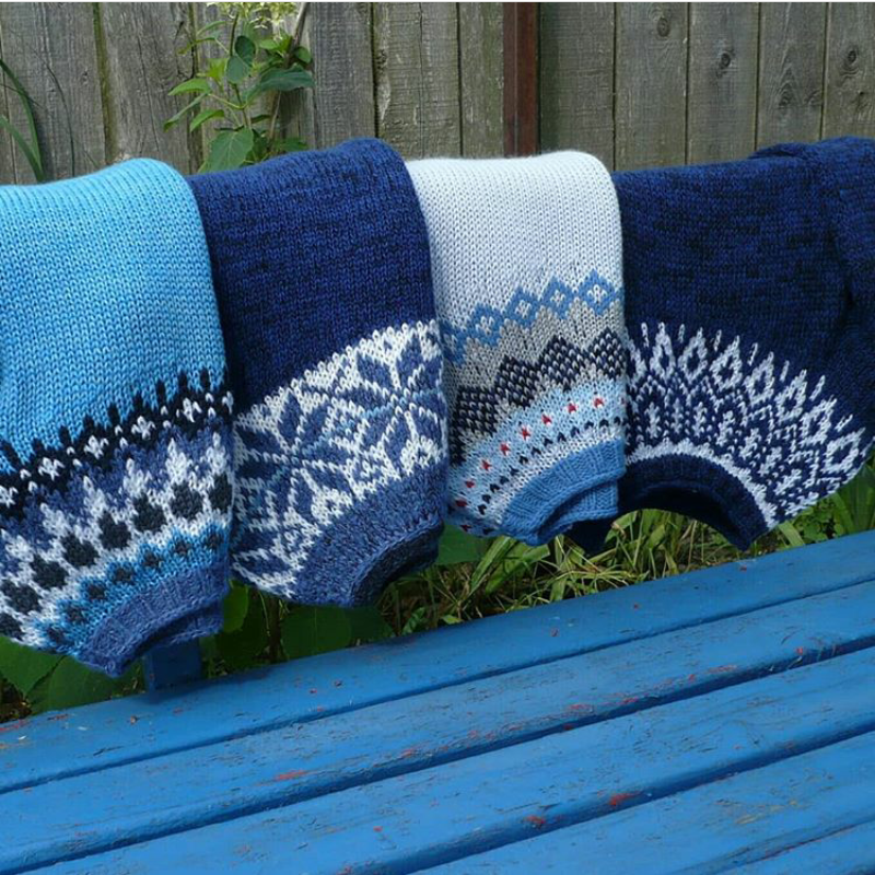 1. Изделия с ярким цветным орнаментом всегда в моде, всегда актуальны. Человечество тысячелетиями украшает свою одежду похожими рисунками, меняются только техники. Сейчас нам доступна техника жаккард. 2. Такими узорами можно украсить любую одежду. Женскую. Мужскую. Детскую. 3. Жаккард - достаточно простая в освоении техника. Ажуры и араны, на мой взгляд, гораздо сложнее. 4. Жаккард - это бесконечная возможность для творчества. Ведь вы не только подбираете гармоничные цветовые сочетания, но и имеете возможность эксперимента со схемами. Вот, например, мои работы, схемы к которым я составляла самостоятельно по мотивам узоров на варежках и шапках. 5. Это достаточно бюджетная техника. Здесь вы можете использовать любые, даже самые маленькие остатки пряжи от других проектов и даже вторичную пряжу. В своих следующих статьях постараюсь остановиться на особенностях и приёмах этой увлекательной техники. .. А вы любите жаккард?