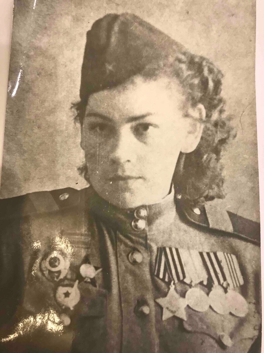 В родном Тобольске в сентябре 1945 года она представляет свою прославленную дивизию.