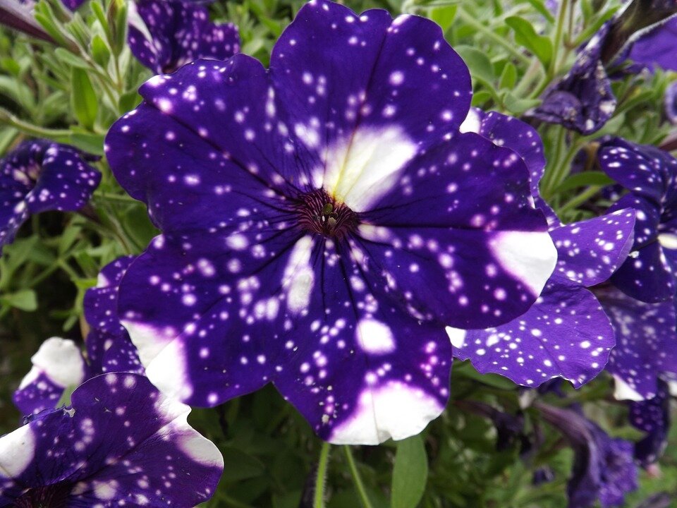 Петунии – это легкие в выращивании однолетние растения, которые популярны за счет того, что летом украшают сады долгим цветением. Но, лично для меня, они достаточно невзрачны и практически сливаются с фоном из-за того, что я слишком часто вижу их в клумбах и корзинах на дачах, в парках и вокруг магазинов. Поэтому я была очень удивлена, просматривая Инстаграм, когда увидела новый сорт петунии под названием «Ночное небо». Их яркие пурпурные лепестки с белыми крапинками мгновенно приковали мой взгляд к экрану телефона. Сначала я не могла поверить, что это были именно петунии, потому что они не были похожи на другие цветы, которые я видела раньше в садах. Конечно, существуют и другие пурпурные сорта, но звездный эффект белых пятен на «ночном небе» именно этого вида просто завораживает. Иногда его называют «цветок галактики» из-за того, что внешний вид лепестков очень напоминает космос. Петуния «Ночное небо» - это относительно новый сорт, представленный в 2016 году. С тех пор она быстро зав
