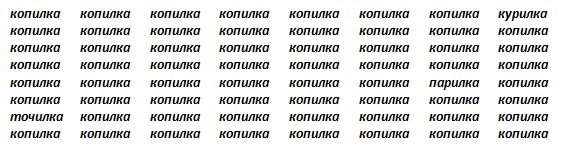 Привет, друзья! Прошлый пост с тестом "Найди лишнее" вам очень зашел, поэтому я решила двигаться в этом направлении и выкладывать побольше такого материала. Вы дали мне понять, что это вам интересно - я выкладываю. Сегодня я подготовила для вам три мини-теста, которые заставят вас разбудить свою внимательность и включить логику. Готовы? Тогда начинаем! В первом тесте вам предстоит найти среди повторяющегося слова "копилка" ТРИ лишних, не связанных между собой. И как всегда - подсказка в карусельке. Просто смахните влево. Только чур не подсматривать! Справились? Тогда переходим к следующему тесту! Среди слова "пергамент" найдите ТРИ слова, не похожих на другие. И если первый тест был простым, то остальные немного сложнее! Вы молодец! Это задание было действительно сложным. И следующее ничуть не проще. Среди множества слов "конкурент" найдите ТРИ лишних. Я старалась сделать задания как можно сложнее, но вы справились с этим. Дайте знать, если вам нравится эта рубрика! Не забывайте