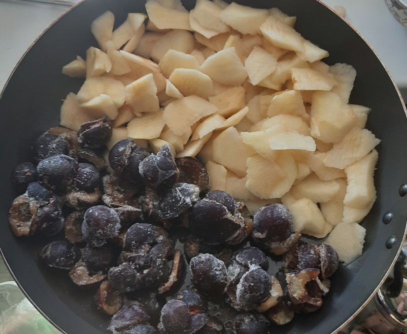 Для тех, у кого нет времени готовить или нет желания заморачиваться на сложные рецепты. Если вы заранее не позаботились о вкусном и полезном завтраке или внезапно приехали гости, то можно воспользоваться этим нехитрым рецептом, который всегда меня выручает. Он очень простой и из продуктов, которые всегда есть дома. Ингредиенты: 2 яйца; 1/3 (или ½, если любите послаще) стакана сахара; 1 ч. л. соды (загасить уксусом); 2 столовые ложки муки. ягоды (смородина, терновник, малина и др.) или 2-3 яблока (груши, бананы и др.) Этапы: 1. Взбить яйца с сахаром. 2. Добавить соду. 3. Добавить 2 СТОЛОВЫЕ ЛОЖКИ (не больше) муки и все тщательно перемешать. 4. Сковороду (форму) смазать растительным маслом. 5. Нарезать фрукты или положить ягоды (можно замороженные). Все это выложить на сковороду (форму).
