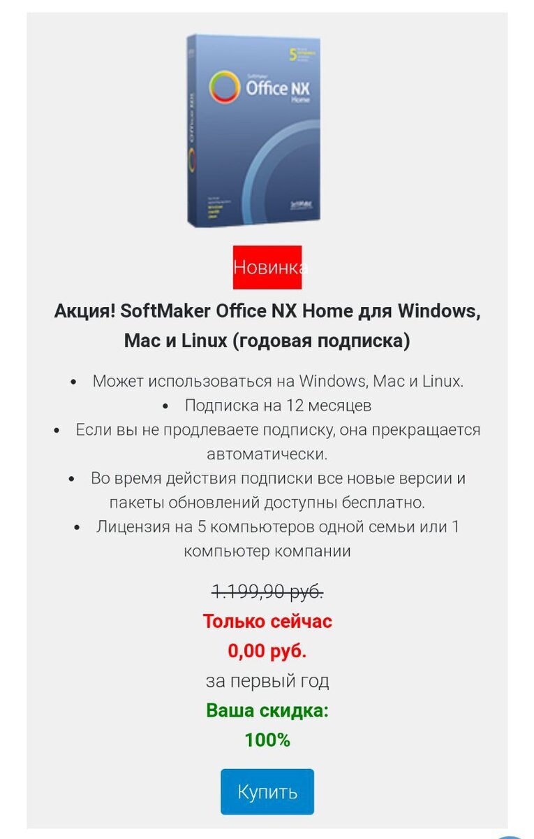 Находим SoftMaker Office NX Home, нажимаем "Купить" и регистрируемся;