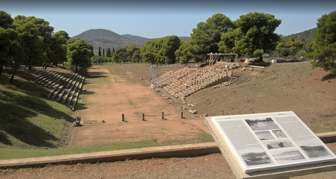 Эпидавр - место поклонения Асклепиосу. Вокруг святилища Асклепиоса были возведены храмы Артемиды, Афродиты и Фемиды, а также здания для предоставления услуг для паломникам и налажена инфраструктура для спортивных и музыкальных соревнований: стадион, гимназия, термы, Одеон и театр. Стадион (длиной 181 м), построенный в 4 веке до нашей эры, каждые четыре года проводил спортивные игры в святилище Асклепиоса. По-прежнему видны стартовые колонны и огромное количество каменных скамей для зрителей, площадка для соревнований, вход для спортсменов.