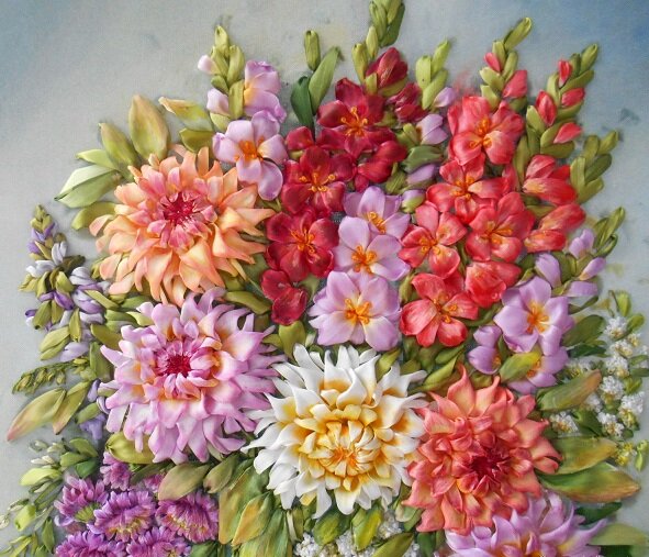 Вышивка лентами это лишь малая толика из того, что умеют делать наши мастерицы. Можно, действительно, целый канал создать о таких рукодельницах. И эти мастера, может быть, живут с нами по соседству, и мы даже не догадываемся об этом. А как о них узнать-то, разве что по интернету. Но далеко не все в наше время пользуются инетом, что многим покажется странным. И не у всех есть компьютеры с новомодными телефонами (чуть слово «гаджетами» не сказала, ненавижу этот иностранный мусор). Выставки никакие не проводятся. А если и проводятся, то за место нужно выложить кругленькую сумму. А это не всем по карману. С соседями, как раньше, мало кто общается. Вот и не знаем мы о таких талантах.