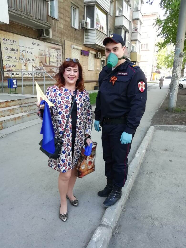 В День Победы на улицах Новосибирска и Новосибирской области сотрудники подразделений вневедомственной охраны Росгвардии, находящиеся на маршрутах патрулирования, вручили жительницам региона страницу фронтовой газеты, свёрнутую письмом-треугольником, внутри которой - синий платочек - как дань памяти и символ мирного неба. Акция «Синий платочек» - создана для привлечения внимания молодежи и старшего поколения к сохранению исторической памяти о подвиге женщин в годы Великой Отечественной войны – на полях сражений и в тылу, а также о роли женщин в послевоенное время. «Во время войны женщинам было тяжелее всего. Они сражались на фронтах, работали в госпиталях, воспитывали детей. Эта акция создана для того, чтобы сказать о них, подчеркнуть их роль. Наши женщины-герои все смогли вынести. Это мы и должны донести до молодого поколения», - подчеркнул заместитель начальника Управления по работе с личным составом подполковник Дмитрий Черезов. Одна из основных целей акции - военно-патриотич